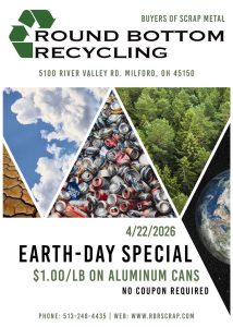 Round Bottom Recycling offers various discounts and we proudly host events throughout the year which we will list here. Our events will range from community sponsored events, Customer Appreciation Day, to Nationally sponsored events, as well as other special dates to keep in mind. Make sure you check back as our Events and Specials will change and be kept updated throughout the year.